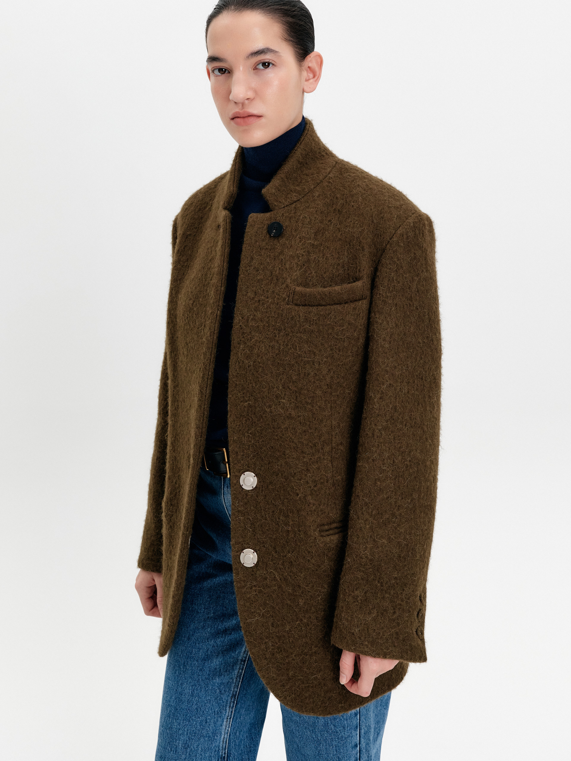 This is an oversized silhouette Short body shawl coat with a classic yet stylish design using 50% cashmere wool mixed material as a FACE NONE signature item.