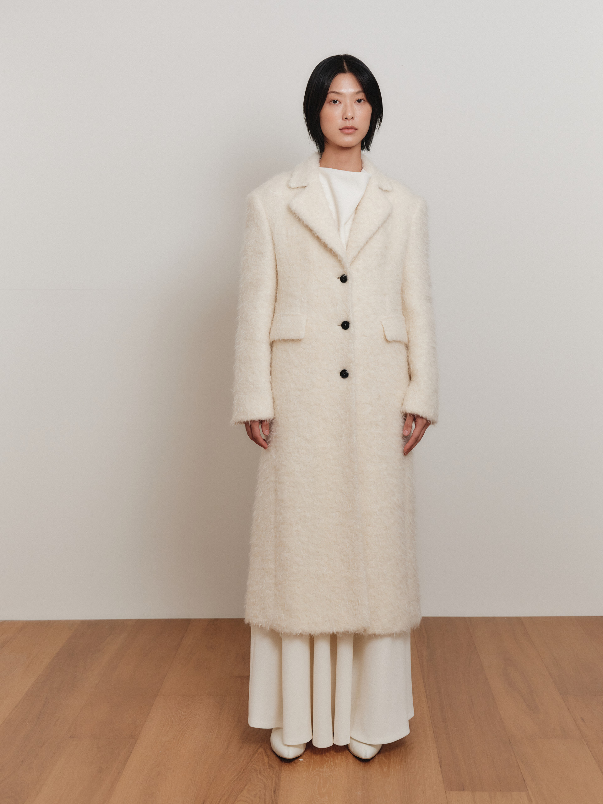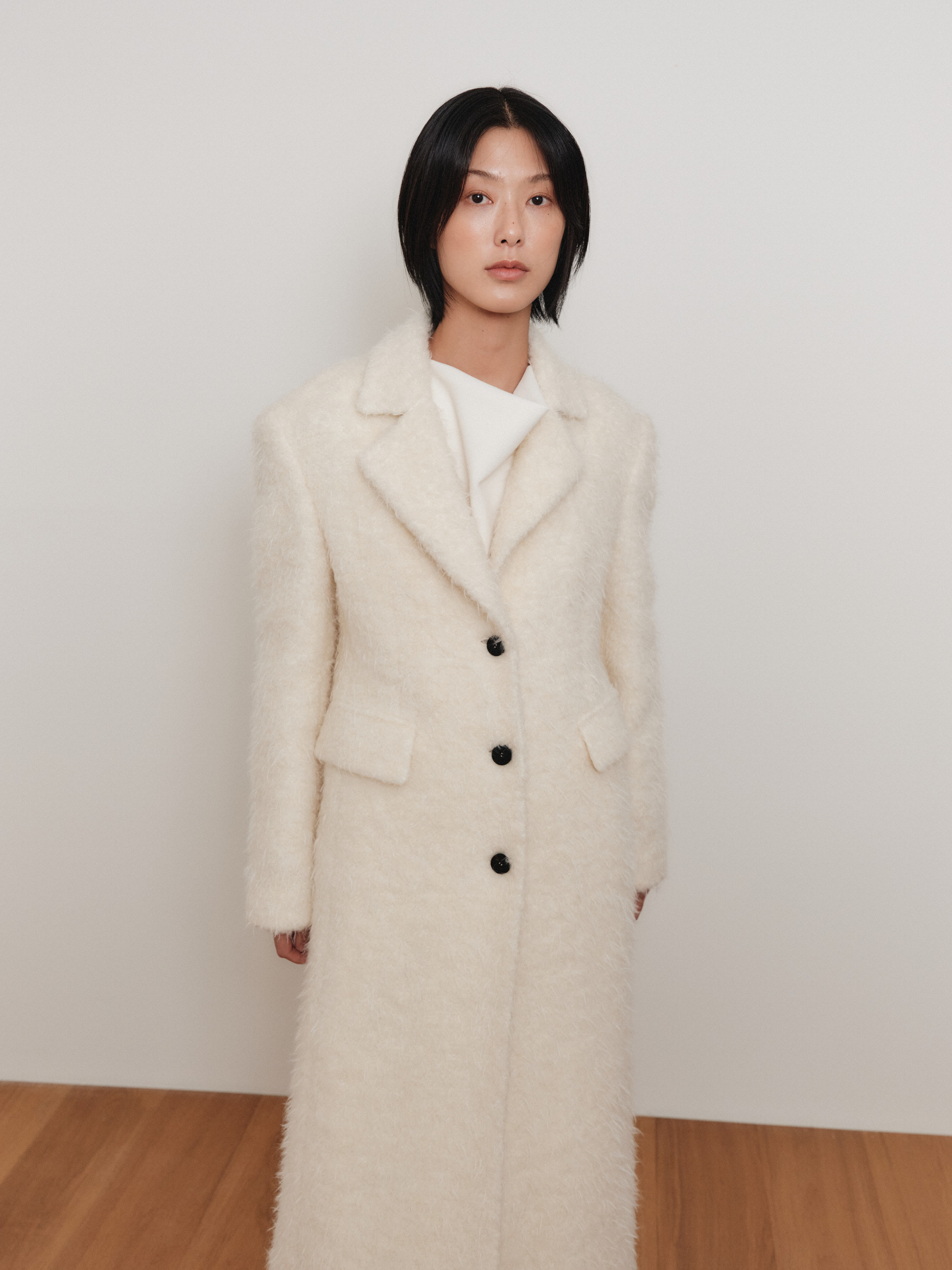 This is an oversized silhouette Short body shawl coat with a classic yet stylish design using 50% cashmere wool mixed material as a FACE NONE signature item.