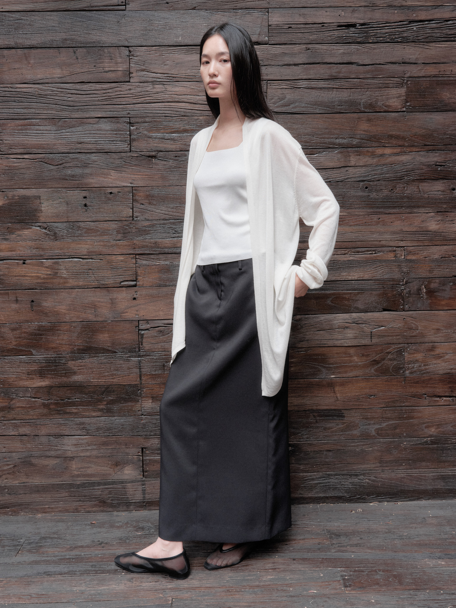 The material with a soft touch and subtle gloss provide a warm fit. It's a stylish product even if you wear it alone.