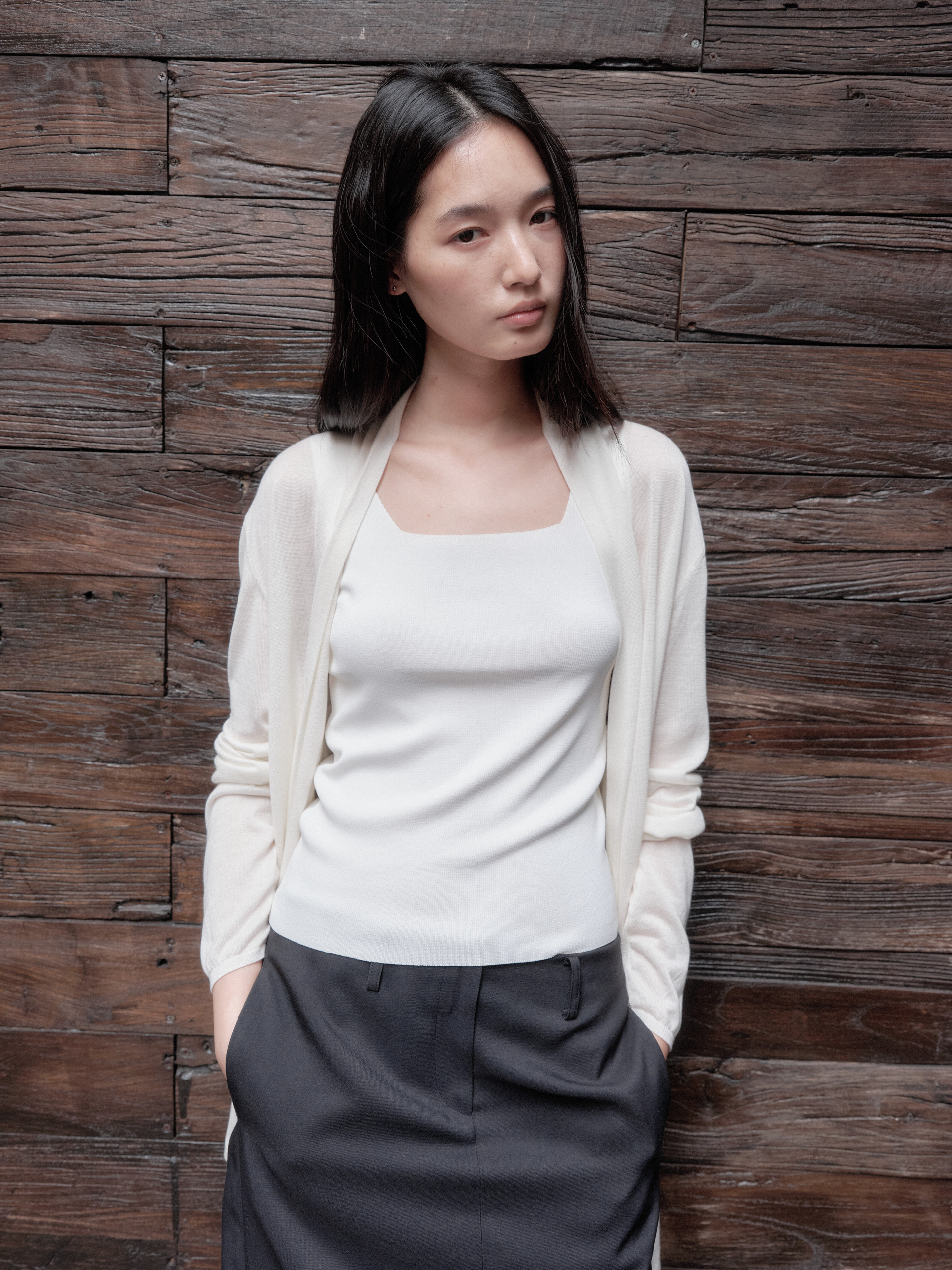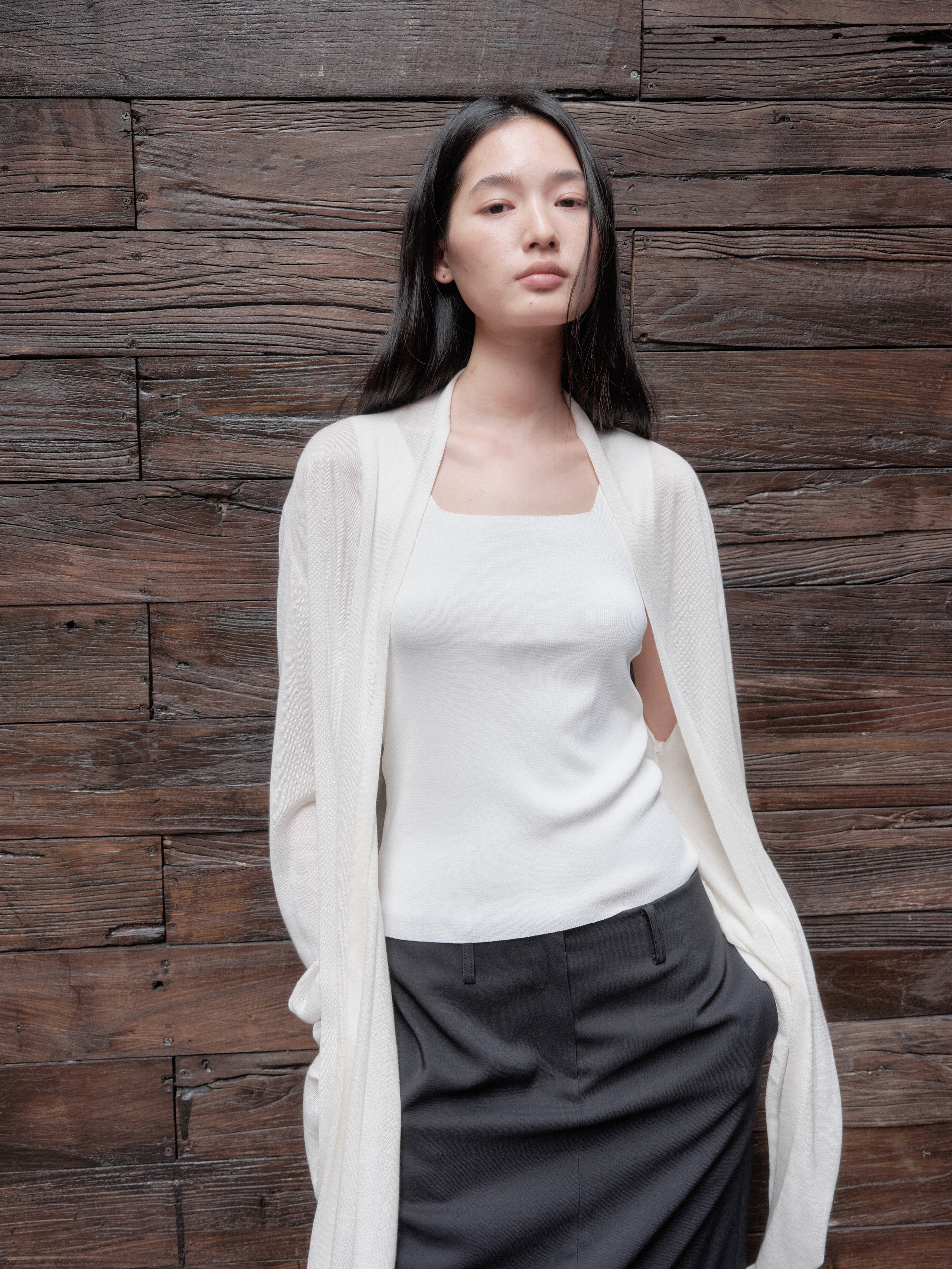 The material with a soft touch and subtle gloss provide a warm fit. It's a stylish product even if you wear it alone.